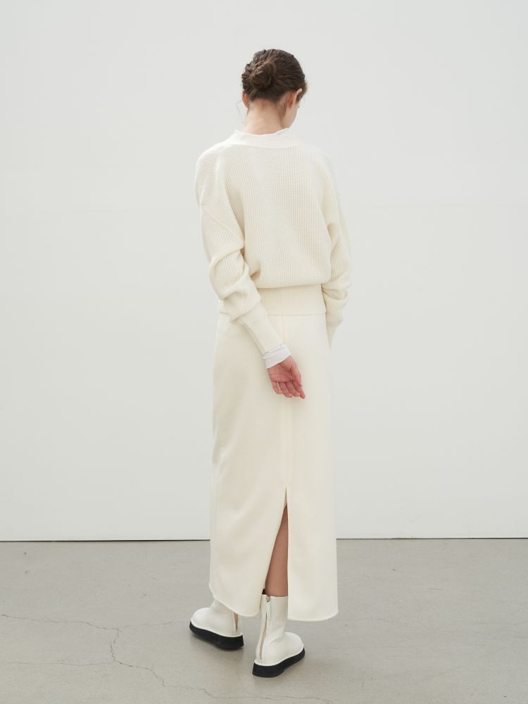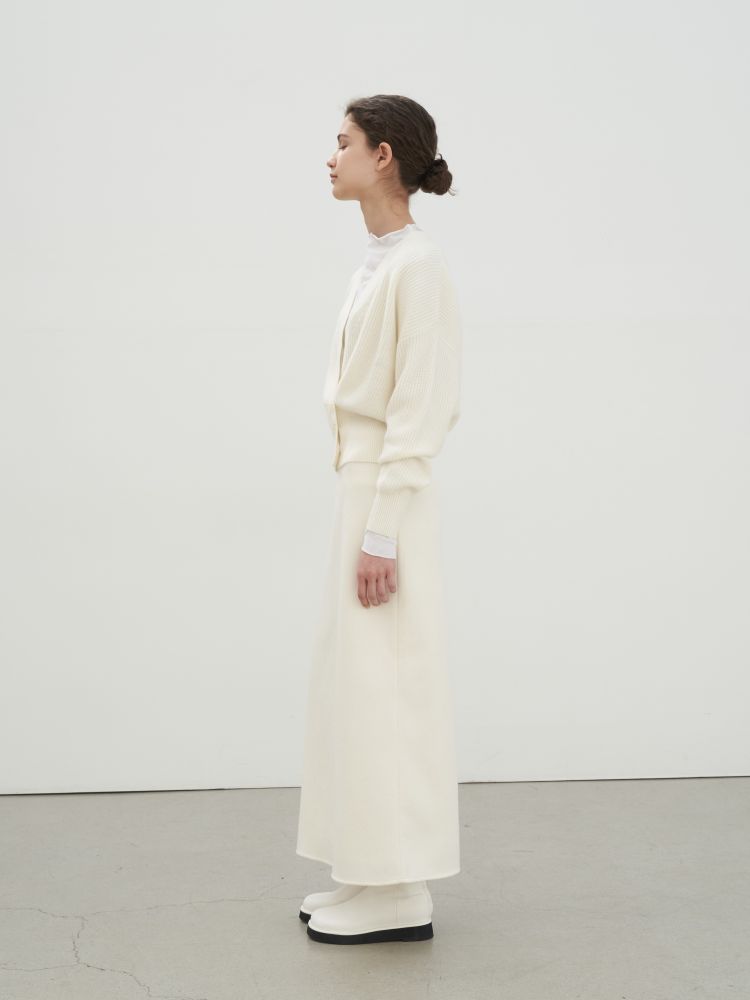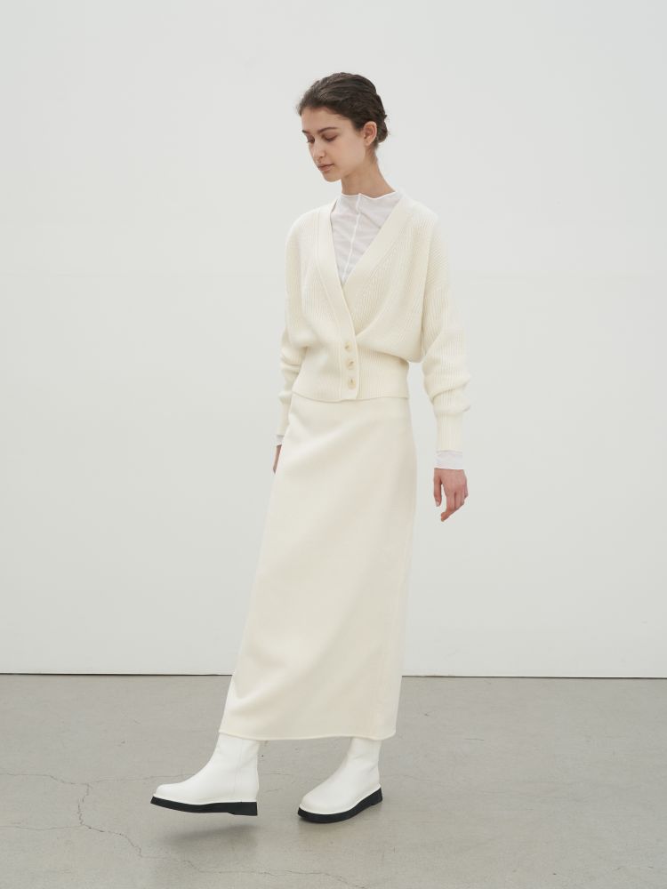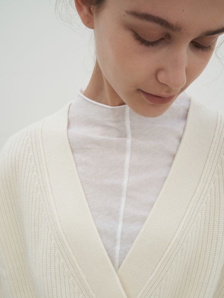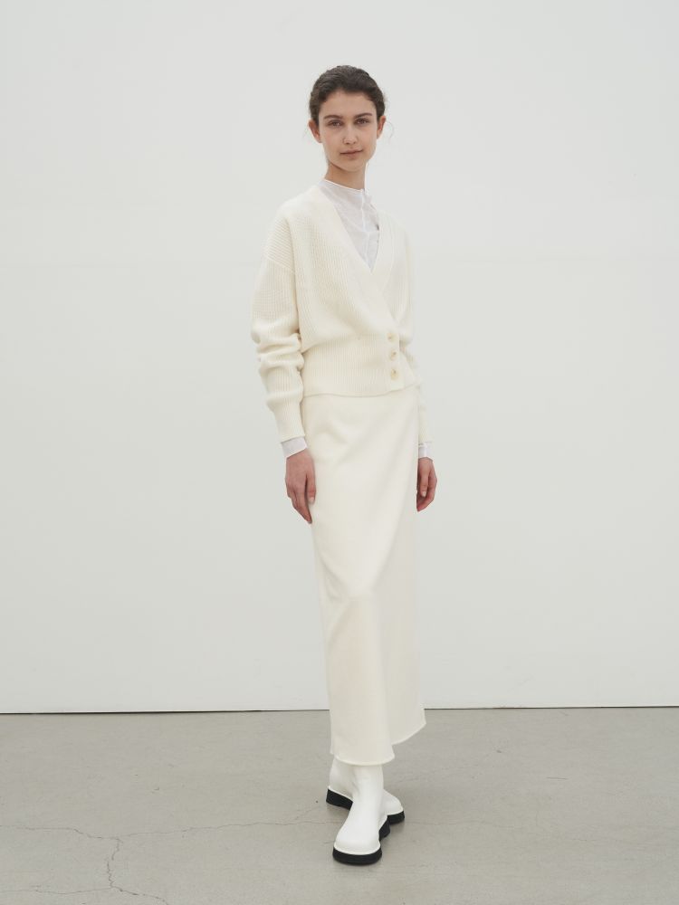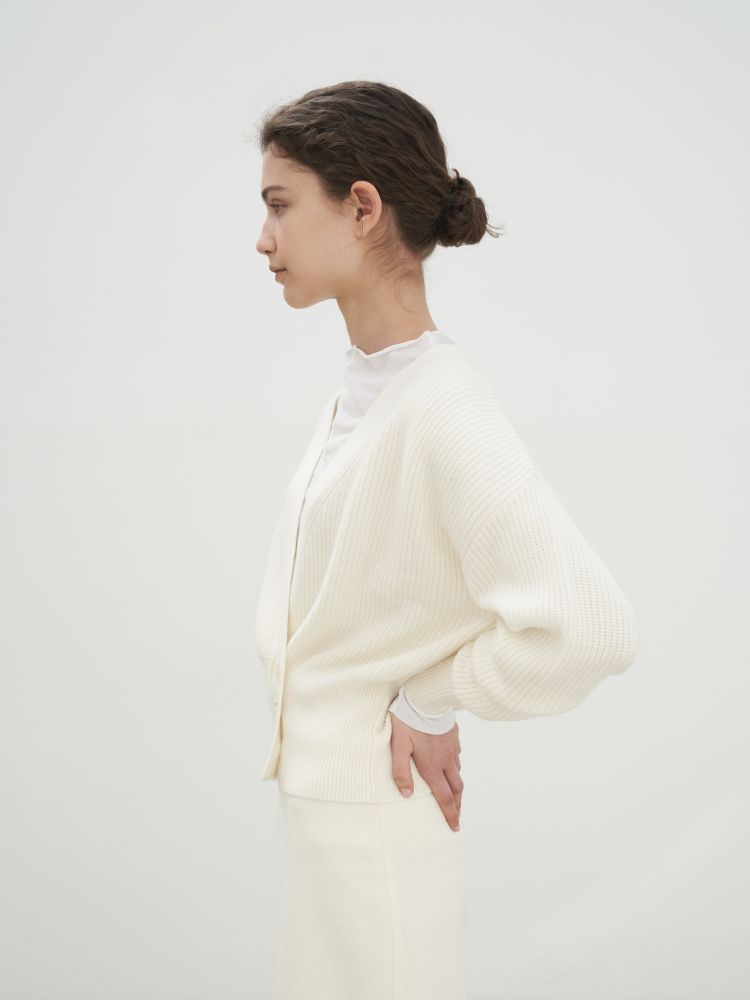 Rib knit stretch cashmere and nylon-blend cardigan.