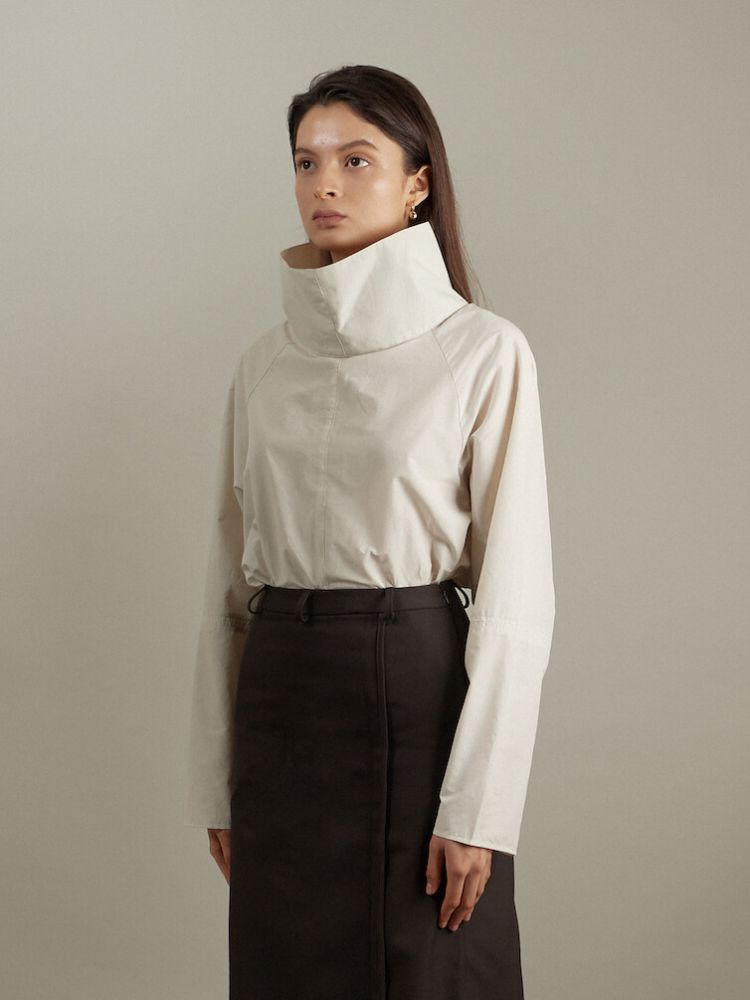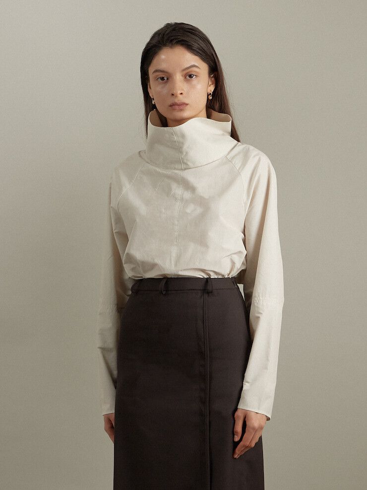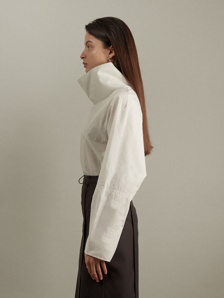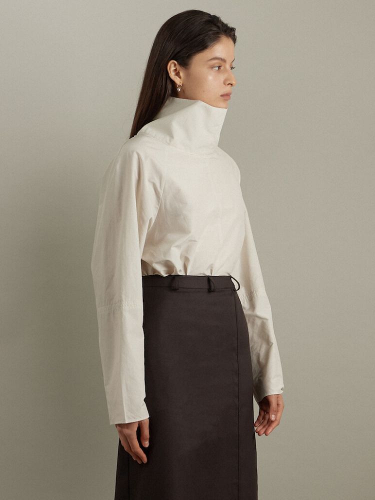-와이드한 하이넥 디자인으로 독특하면서 우아한 무드